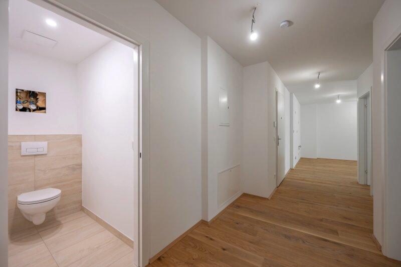 Zur Miete gelangt diese neu errichtete ca. 77m² große 4-Zimmer Wohnung mit Terrasse und Garten in sehr guter Lage des 22. Wiener Gemeindebezirks.