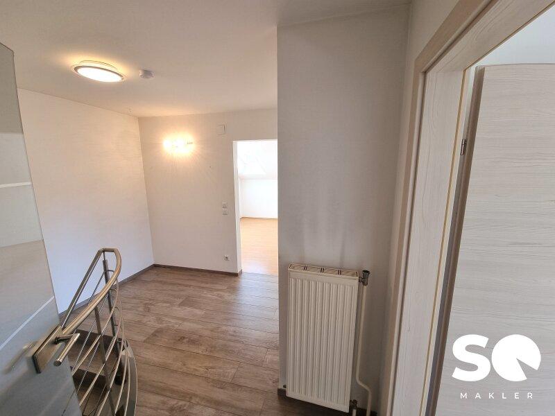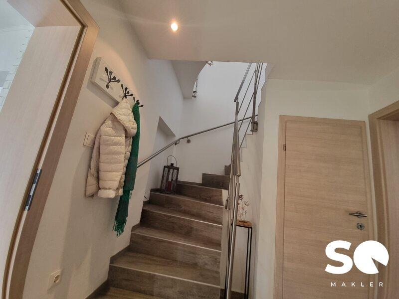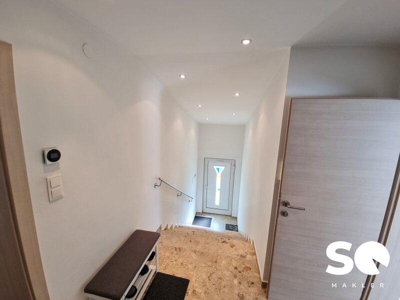 Ein gemeinsamer Eingangsbereich erschließt die beiden Wohneinheiten, wodurch sowohl gemeinschaftliche als auch getrennte Nutzungskonzepte optimal realisierbar sind. Zusätzlich stehen rund 100 m² im Dachgeschoss als Ausbaureserve zur Verfügung ideal zur Schaffung einer weiteren Wohneinheit oder zur individuellen Erweiterung.