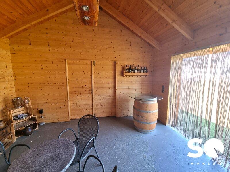 Gartenhaus mit Sitzbereich bzw. als Geräte- oder Partyhaus nutzbar
