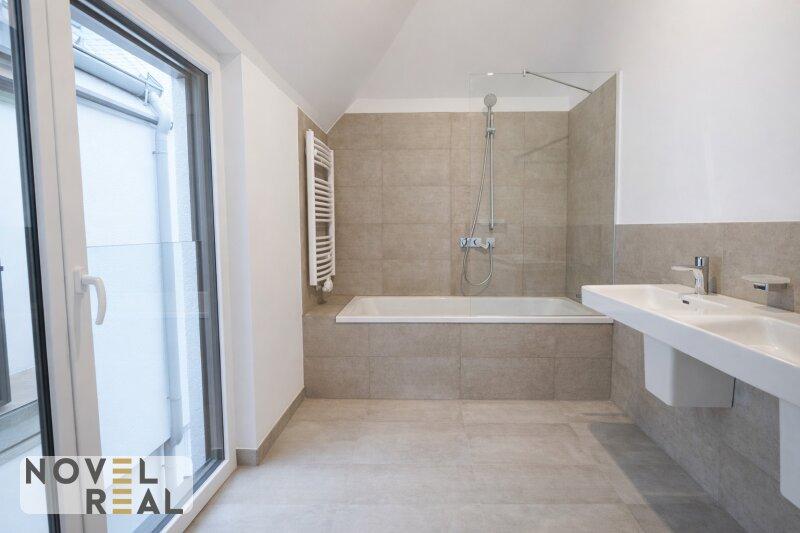 Das Badezimmer überzeugt mit hochwertigen Sanitäranlagen und modernem Design, ergänzt durch ein separates WC für zusätzlichen Komfort. Diese Dachgeschoßwohnungen vereinen Wiener Tradition mit zeitgemäßem Luxus und schaffen ein Zuhause, das gleichermaßen repräsentativ und behaglich ist.