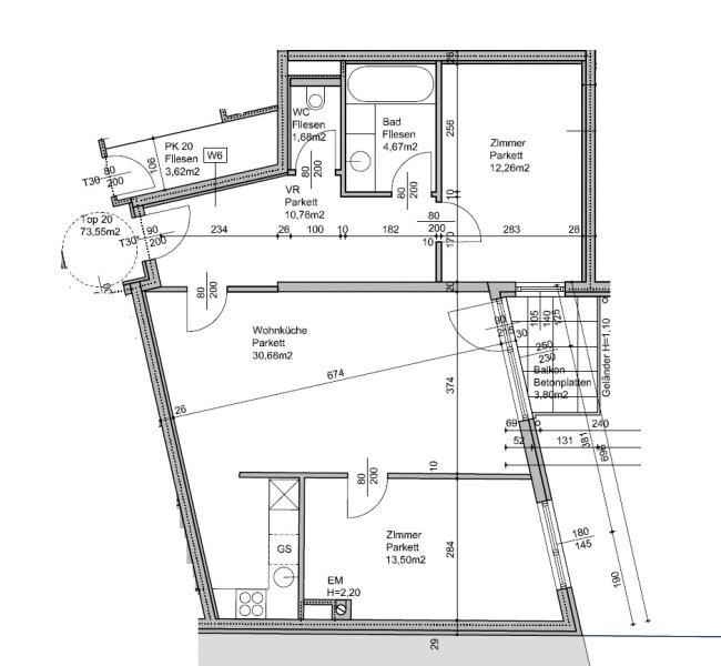Mietwohnung mit Balkon in 1210 Wien 3 Zimmer auf ca. 73,55 m²