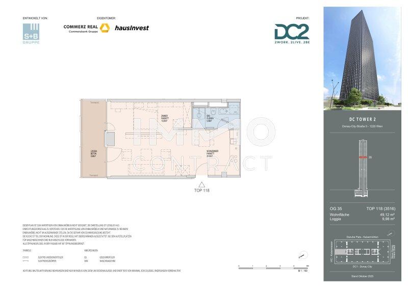 Der DC2 Tower zählt mit 52 Stockwerken und 314 hochwertigen Wohnungen ab dem 32. Obergeschoß zu den spektakulärsten Wohnprojekten des Landes. Die Wohnungsgrößen von ca. 30 bis 260 Quadratmetern bieten ein bewusst vielfältiges Angebot von intelligent geplanten Einzimmerstudios über komfortable Familienwohnungen bis hin zu großzügigen Fünfzimmer-Maisonettewohnungen. Jede Einheit überzeugt durch durchdachte Grundrisse, hohe Wohnqualität und großzügige Fensterflächen, die den Blick nach außen inszenieren und die Stadt Teil des Wohnraums werden lassen. Loggien, Balkone und Freiräume erweitern den Wohnbereich und machen die beeindruckende Höhe unmittelbar erlebbar.