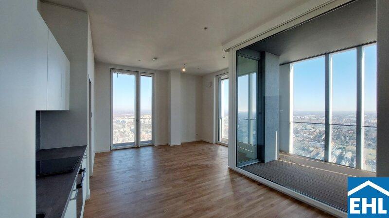In einzigartiger Lage, direkt bei der U1-Station Kagran und vis-à-vis vom Donau Zentrum, entsteht ein exklusiver, ca. 155m hoher Wohnturm mit 45 Etagen. Die insgesamt 347 Mietwohnungen bieten einen vielfältigen Wohnungsmix: von smart geschnittenen 1,5-Zimmer-Apartments ab ca. 38 m² über komfortable 2-Zimmer-Wohnungen bis hin zu großzügigen 3- und 4-Zimmerwohnungen mit bis zu ca. 80 m².