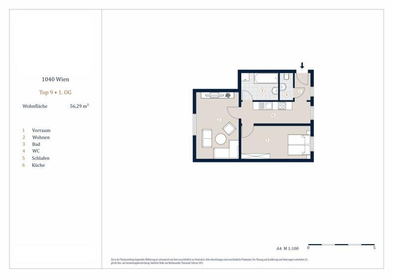 Zum Verkauf gelangt eine 2-Zimmer Wohnung im 4. Wiener Gemeindebezirk.