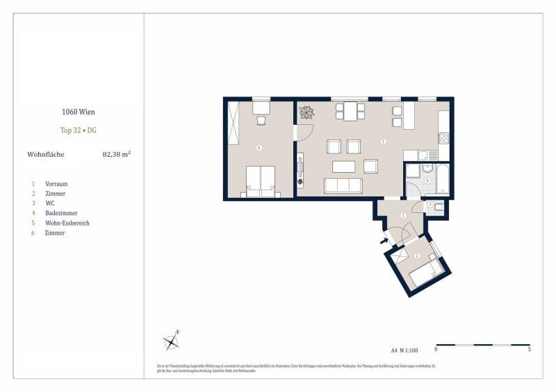 Die Wohnung befindet sich im DG eines schönen Stilaltbaus aus dem Jahr 1897 und gliedert sich in einen Vorraum, eine Wohnküche, ein Zimmer und ein Kabinett, ein Badezimmer und ein separates WC.