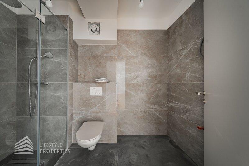Der Vorraum bietet Zugang zum praktischen Abstellraum mit Waschmaschinenanschluss. Vom Gang aus gelangt man in die Kochnische, die Küchenanschlüsse werden individuell nach Käuferwunsch vorbereitet. Ebenfalls vom Gang erreichbar ist das Badezimmer, das mit Dusche, WC und Waschbecken ausgestattet ist. Das Wohnzimmer bietet ausreichend Platz für einen Wohn- und Essbereich. Die Schlafzimmer ist sind ebenfalls zentral vom Gang aus begehbar. Der Wohnung ist ein ca. 4m² großer, südwestlich und hofseitig ausgerichteter Balkon zugeordnet. Dieser ist über das Stiegenhaus zugänglich und verfügt über eine versperrbare Balkontür. Das moderne Badezimmer ist mit Dusche, WC und Waschbecken ausgestattet.