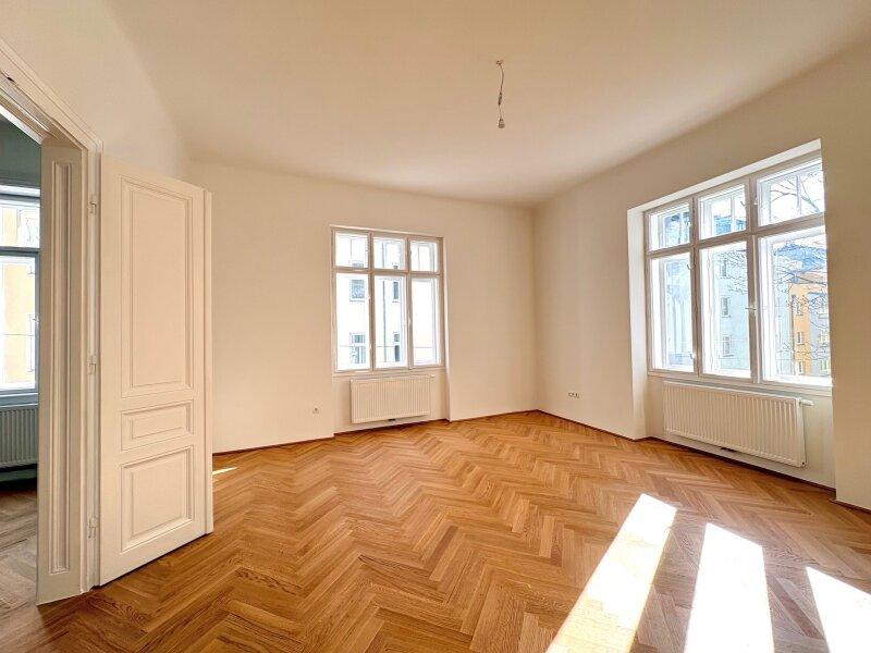 Flügeltüren, Fischgrät-Parkett und überdurchschnittlich hohe Räume im gutbürgerlichen 18. Bezirk - hier schlagen die Herzen von AltbauliebhaberInnen in der Sekunde höher! Die soeben frisch sanierte 2-Zimmer-Wohnung in einem klassischen Altbau aus dem Jahre 1904 liegt im 1. Stock mit Hochparterre, ein Lift ist gerade in Planung. Sie ist hell und wurde mit viel Liebe aufwändig und vollständig saniert und bietet modernen Wohnkomfort in altehrwürdigen Mauern. Bei der Sanierung wurde großes Augenmerk darauf gelegt, Altes zu erhalten und mit Neuem so zu ergänzen, dass sich ein harmonisches Ganzes ergibt, was man beim Betreten der Wohnung sofort spürt. Die wunderschönen großen Holzkastenfenster und originalen Flügeltüren wurden alle erhalten und neu in Stand gesetzt, was der Wohnung ein unvergleichlich schönes und großzügiges Atelier-Flair verleiht!