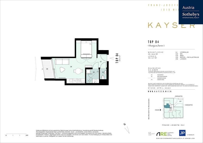 Zum Verkauf gelangt eine hochwertig ausgestattete, vollmöblierte Designwohnung im renommierten Wohnprojekt KAYSER am Franz-Josefs-Kai nur wenige Schritte vom Schottenring entfernt und in unmittelbarer Nähe zum Donaukanal.