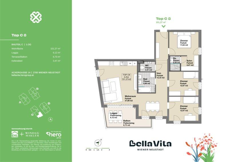 Das Wohnbauprojekt Bella Vita nahe des verzaubernden Wiener Neustädter Kanals steht für "schönes Leben" und das wird hier möglich. Im mediterranen Stil die Außen- und Allgemeinflächen: Gepflasterte Wege in Muschelkalk, Lauben und Schaukeln vermitteln Leichtigkeit, Gemütlichkeit und Wohlgefühl. Im Inneren überzeugende Raumaufteilung, stimmige Architektur, hochwertige Ausgestaltung. Und die Nachhaltigkeit stets im Blick, u.a. durch PV-Anlagen zur Energiegewinnung und einem Dachgeschoß in Holzhybridbauweise.