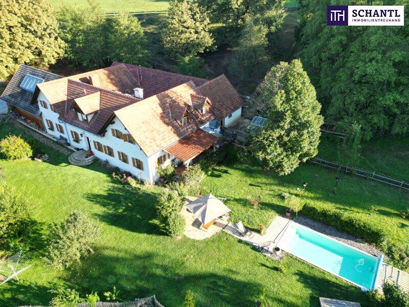 NEUER PREIS! AUSSERGEWÖHNLICHES JUWEL! Exklusiver Vierkanthof im Thermenland Steiermark - Wohnen, Reiten & Leben mit Pool und Natur - Objektnr. 5622759