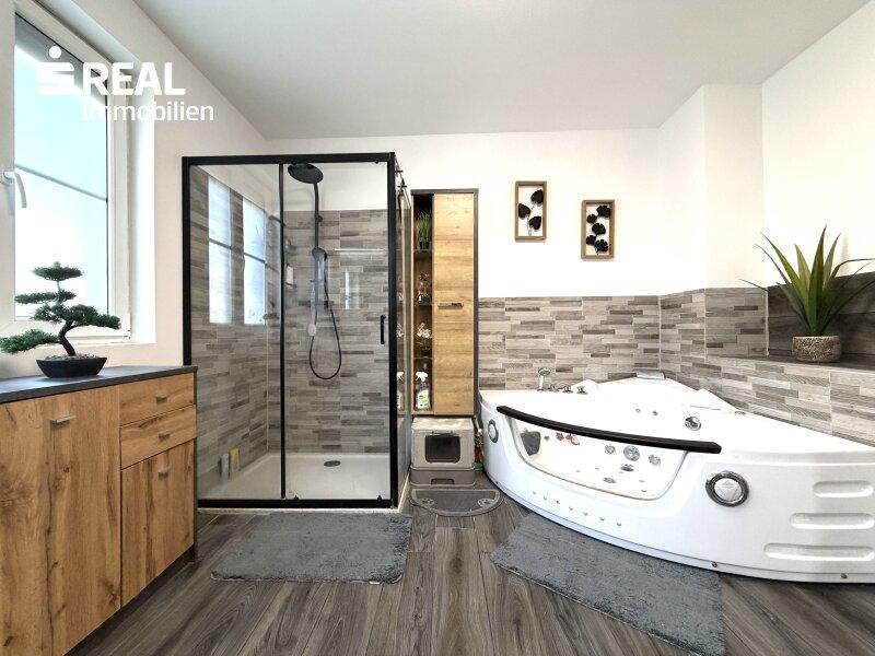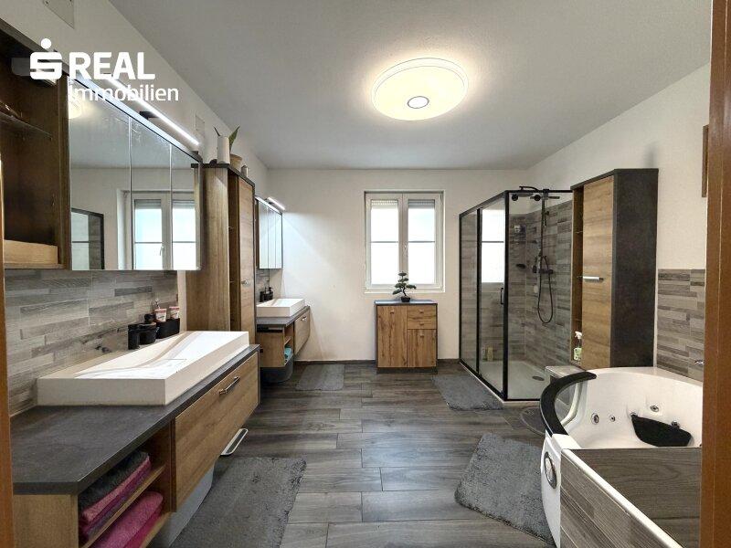 - großes, modernisiertes Badezimmer mit Doppelwaschbecken, Walk-in-Dusche sowie eine Badewanne mit Whirlpool-Funktion