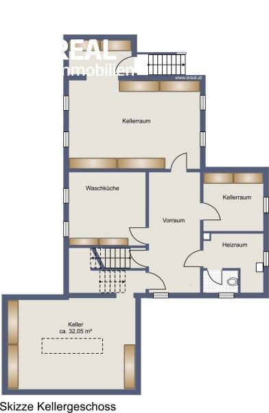 Der Keller verfügt über Fenster und bietet dadurch Tageslicht.
