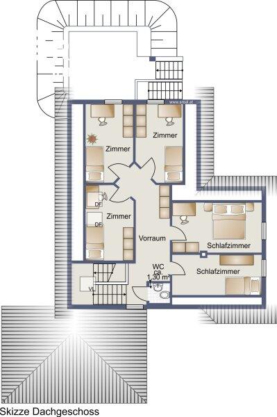 - zwei spiegelverkehrt angeordnete Räume mit Dachschräge, die derzeit als Ankleideraum & Spielzimmer genutzt werden auch als Büro, Gäste- oder Hobbyraum geeignet