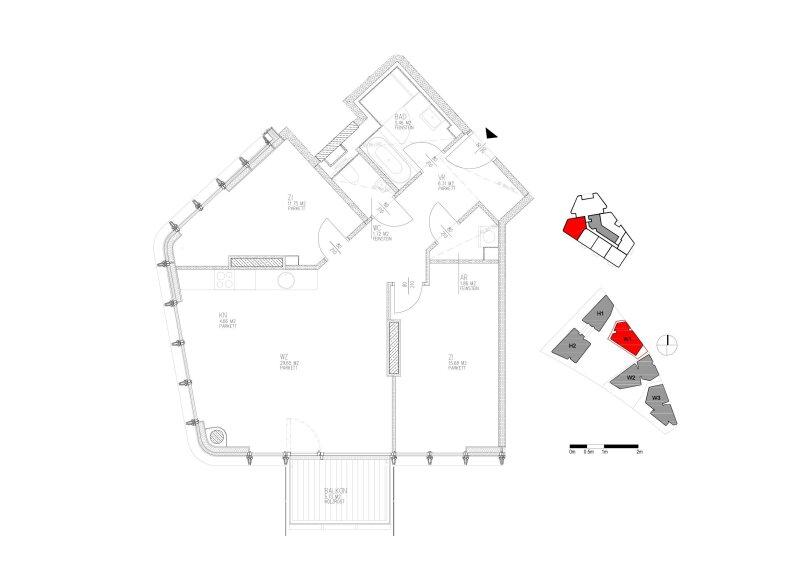 - Bodenbeläge: Eichenparkett bzw. Feinsteinzeug