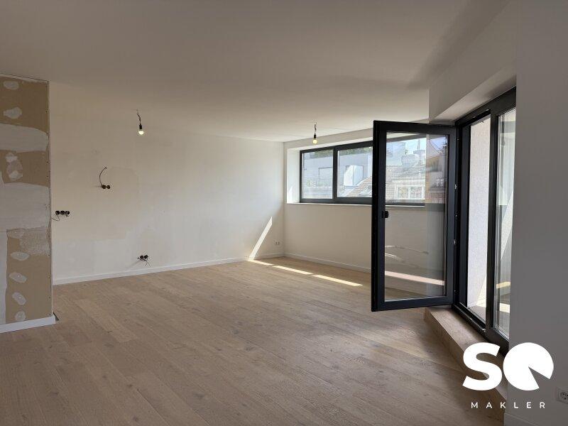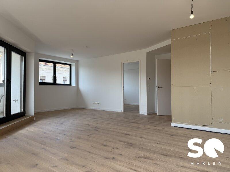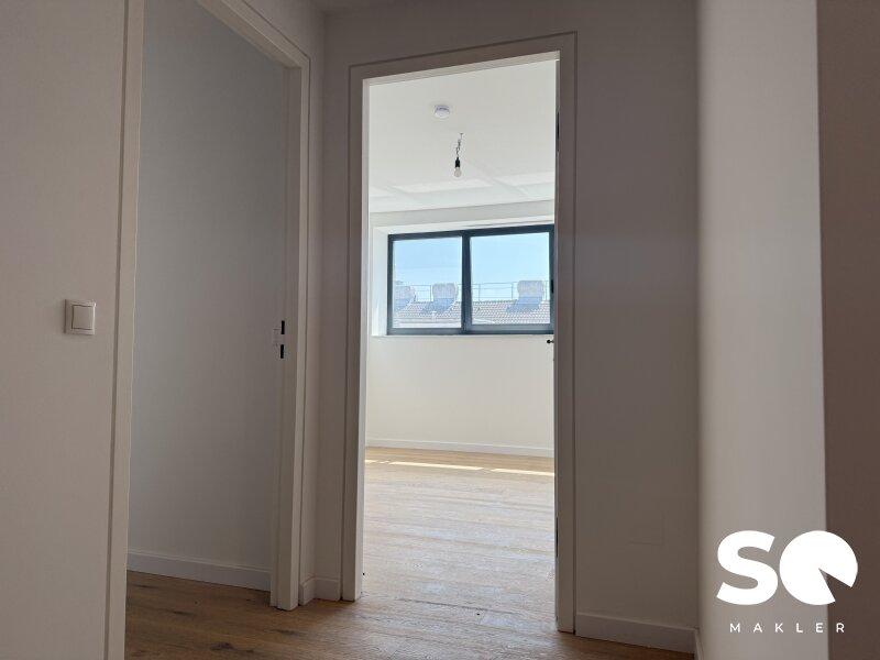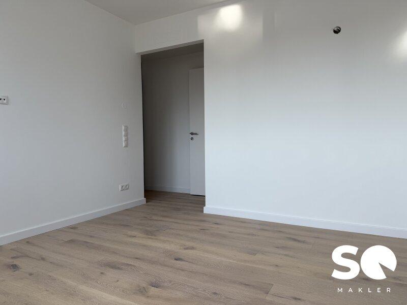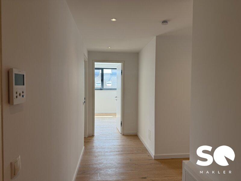 Ausstattung: Premium-Vollholzdielen in elegantem Weiß geölt, hochwertige moderne Fenster (Wärme- und Schallschutz), und Loggia mit Wohlfühlfaktor.