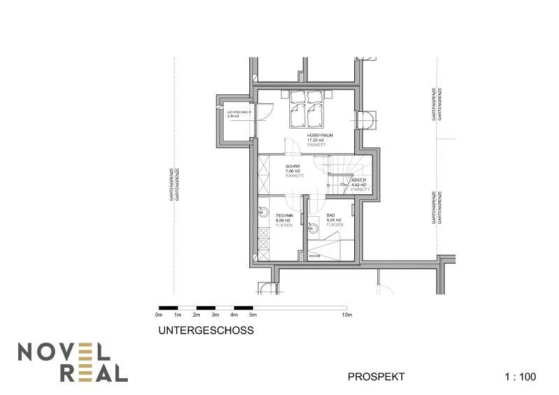 Ein besonderes Augenmerk wurde der optimalen Raumnutzung geschenkt und somit wird auch das Untergeschoß zu einem schlüsselfertigem und beheiztem Wohnkeller (mit Freifläche) ausgebaut, welcher neben Wirtschafts-/Technik- und Stauraum auch ein Badezimmer und ein weiteres Zimmer bietet, welches durch einen großen Lichtschacht mit doppelflügeliger Glastüre und einem Kellerfenster über ausreichend Belichtung und Belüftung verfügt.