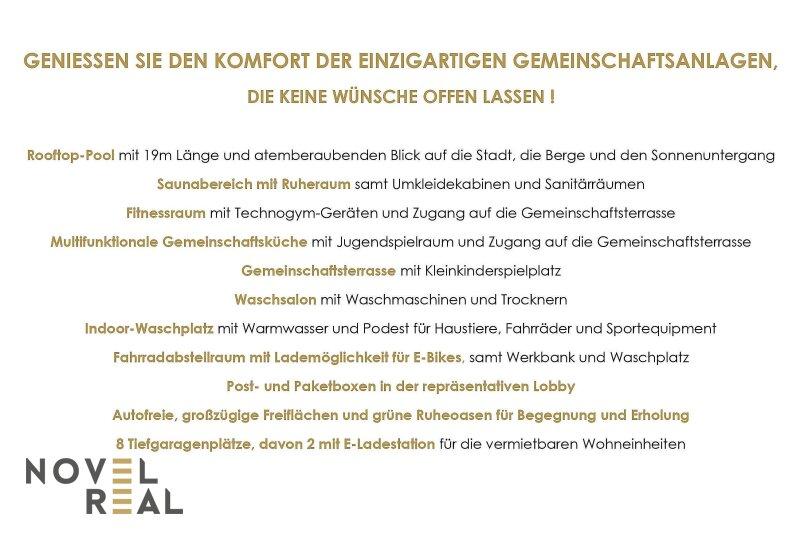 Alle Angaben basieren alleinig auf Informationen, die uns von unserem Auftraggeber übermittelt wurden. Trotz aller Sorgfalt können wir für die Richtigkeit, Vollständigkeit und Aktualität dieser Angaben keine Gewähr übernehmen. Jegliche Weitergabe der übermittelten Daten an Dritte ist nicht gestattet. Bei den Visualisierungen und Abbildungen der Immobilie (insbesondere von Inneneinrichtungen) kann es sich um Symbolfotos bzw. fototechnisch optimierte Fotos handeln. Die veröffentlichten Inhalte und Fotos unterliegen dem österreichischen Urheberrecht. Jede Vervielfältigung, Bearbeitung, Verbreitung und jede Art der Verwendung bedürfen der vorherigen schriftlichen Zustimmung der Novel Real Immobilien GmbH.
