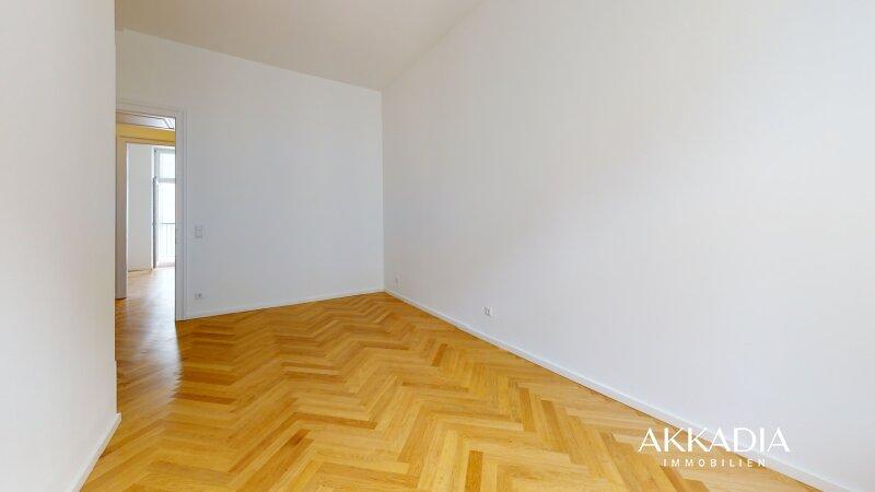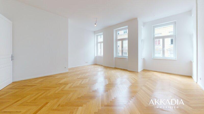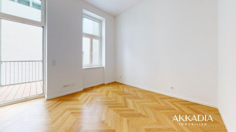 Die Wohnung befindet sich im 1. Stock und hat eine Wohnfläche von ca. 83 m². Die Wohnung verfügt über einen Vorraum mit Abstellraum, eine Wohnküche, ein separates WC und Badezimmer sowie zwei Schlafzimmer. Vom hofseitigen Schlafzimmer aus hat man Zugang zu einem Balkon, der sich vor allem im Sommer als optimaler Rückzugsort eignet. Die Wohnung verfügt über eine Fußbodenheizung mit Einzelraumsteuerung sowie über eine Videogegensprechanlage, eine Sicherheitseingangstüre und Alt-Wien-Stil Innentüren. Im gesamten Wohnbereich ist hochwertiger Parkettboden im Fischgrät-Muster verlegt.
