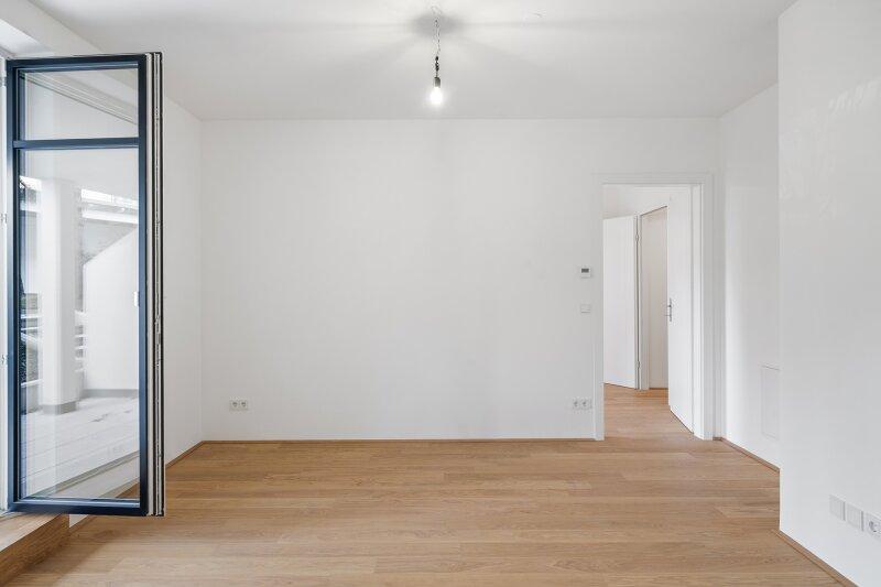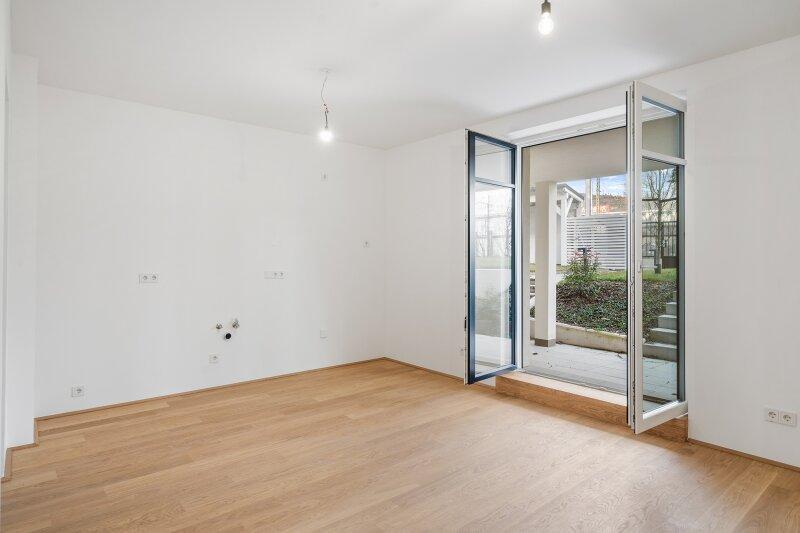 Diese exklusive 2 Zimmer Gartenwohnung ist gänzlich nach Nordosten ausgerichtet und hat sowohl vom Schlafzimmer als auch von der Wohnküche aus einen direkten Zugang zu einem ca. 102 m² Eigengarten, inkl. ca. 12,5 m² Terrasse. Ein Gartenzaum kann gerne auf Wunsch errichtet werden.