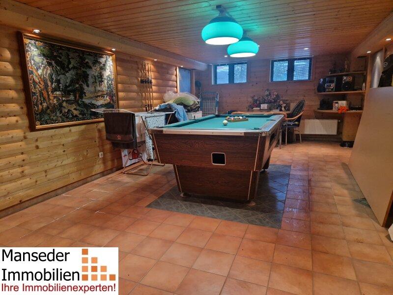 Die Vollunterkellerung sorgt dafür, dass einerseits genügend Stauraum gegeben ist und andererseits mit Wellnessbereich, Bar und Billardraum tolle Räumlichkeiten mit genügend Platz für die Freizeitgestaltung zur Verfügung stehen.  Auch für die fahrbaren Untersätze ist mit 2 Garagen genügend Platz vorhanden.