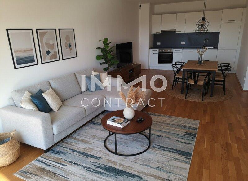 Die Wohnung punktet durch einen optimalen Grundriss mit einer großzügigen Wohnküche (ablösefreie Einbauküche), ein gemütliches Schlafzimmer und ein elegantes Bad. Der hochwertige Parkettboden sorgt für eine warme und behagliche Atmosphäre. Die moderne, vollständig möblierte Küche lädt zum Kochen und Verweilen ein und ist ideal für Hobbyköche und Genießer.