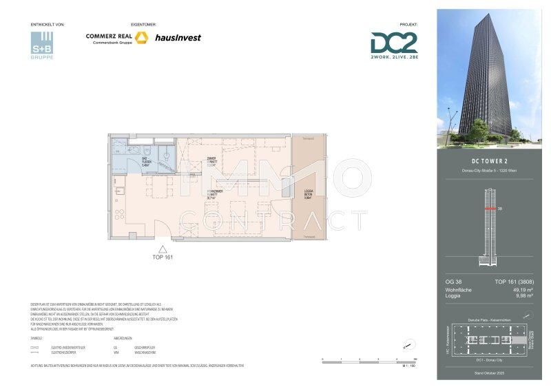 Der DC2 Tower zählt mit 52 Stockwerken und 314 hochwertigen Wohnungen ab dem 32. Obergeschoß zu den spektakulärsten Wohnprojekten des Landes. Die Wohnungsgrößen von ca. 30 bis 260 Quadratmetern bieten ein bewusst vielfältiges Angebot von intelligent geplanten Einzimmerstudios über komfortable Familienwohnungen bis hin zu großzügigen Fünfzimmer-Maisonettewohnungen. Jede Einheit überzeugt durch durchdachte Grundrisse, hohe Wohnqualität und großzügige Fensterflächen, die den Blick nach außen inszenieren und die Stadt Teil des Wohnraums werden lassen. Loggien, Balkone und Freiräume erweitern den Wohnbereich und machen die beeindruckende Höhe unmittelbar erlebbar.
