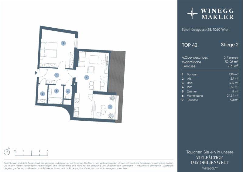 Hofseitige Terrassenwohnung in bester Stadtlage nächst Mariahilfer Straße - Objektnr. 5624418