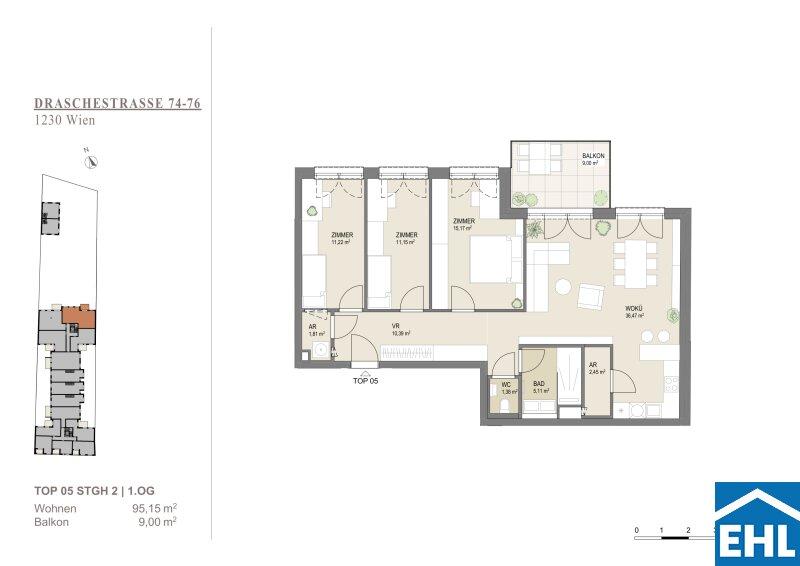 Die Lage wird durch die unmittelbare Nähe zu bedeutenden Einrichtungen und Freizeitmöglichkeiten zu einer wahren Lebensqualität. Der Wienerberg, die Hochschule Campus Wien und das Westfield Shopping Center Süd sind nur einen Katzensprung entfernt. Für Familien bietet die fußläufige Erreichbarkeit von Schulen, Kindergärten und Supermärkten eine bequeme Alltagsstruktur.
