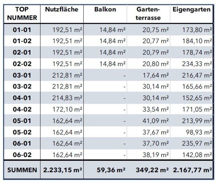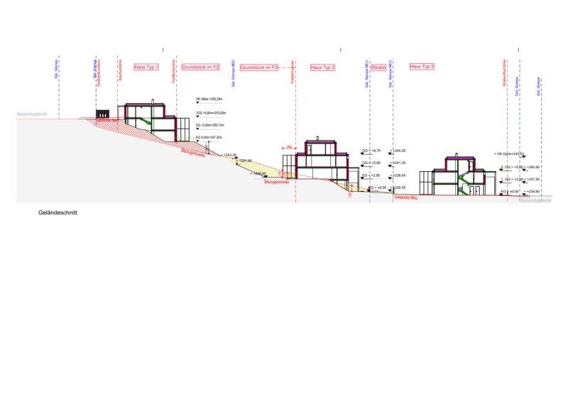 Die Liegenschaft teilt sich auf in 6 Bauplätze. Auf allen Bauplätzen liegen die notwendigen Baugenehmigungen vor. Gesamt ergibt sich somit eine Nutzfläche von ca. 2.233 m² und ca. 2.168 m² Eigengärten.
