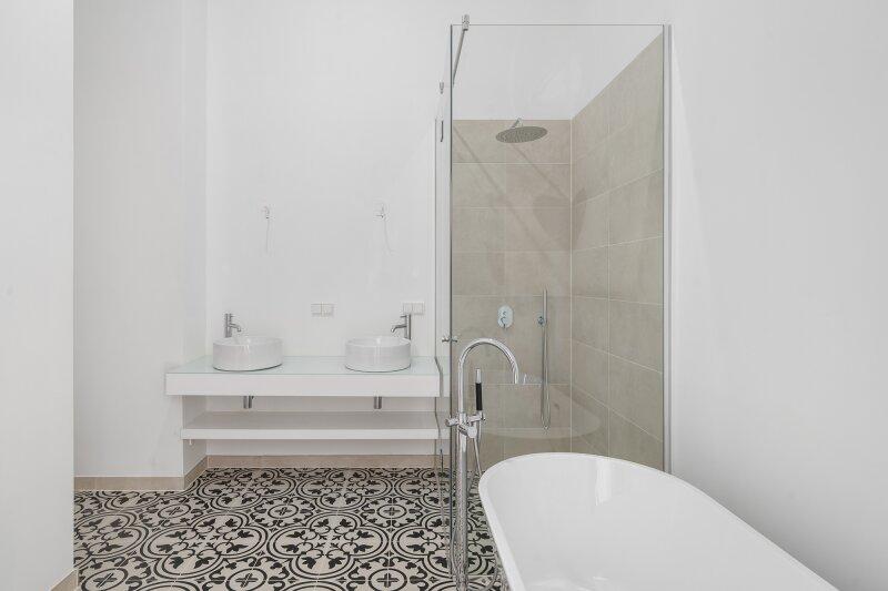 ca. 3,6 m Raumhöhe; Klimaanlage; Edler Parkettboden aus geölter Eiche (aus österreichischer Produktion); stilvolle Fliesen in Bad und WC; Hochwertige Sanitärausstattung; Holz-Alu-Fenster mit 3-fach-Isolierverglasung und elektrische Außenjalousien; Fußbodenheizung; Luftwärmepumpe für Heizung und Warmwasser; Vollmassive Eingangstüren im Alt Wien-Stil; Zentralschließanlage; TV-/Internetanschluss (A1); Video-Gegensprechanlage