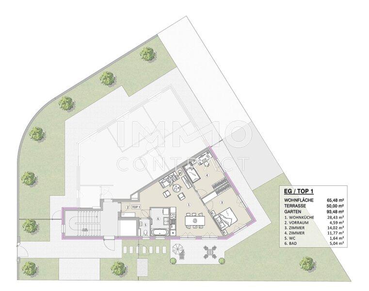 Top 1 begeistert mit einer außergewöhnlich großzügigen Freifläche: Starten Sie den Tag mit Sonne und frischer Morgenluft auf der ca. 50 m² großen Terrasse und im privaten Garten mit ca. 94 m². Die rund 66 m² Wohnfläche überzeugen durch einen offenen Wohn- und Essbereich mit direktem Zugang ins Freie. Zwei vielseitig nutzbare Schlafzimmer jeweils mit Ausgang zu Terrasse und Garten eignen sich ideal als Schlaf-, Kinder- oder Arbeitszimmer. Ein Badezimmer mit Blick ins Grüne sowie ein separates WC runden dieses besondere Wohnangebot perfekt ab perfekt für Pärchen und Kleinfamilien.