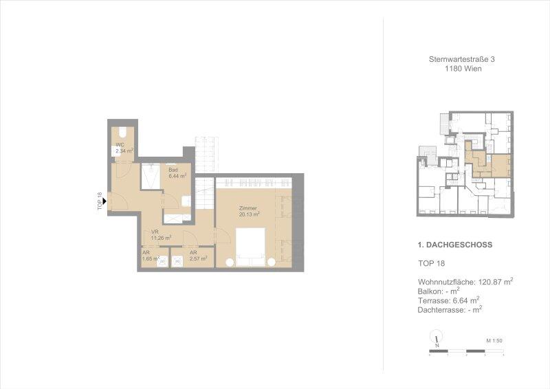 Der Drei-Zimmer-Erstbezug befindet sich im 1. Dachgeschoß und bietet über 120 qm Wohnfläche auf zwei Ebenen und eine hofseitige Terrasse mit rund 7 qm.
