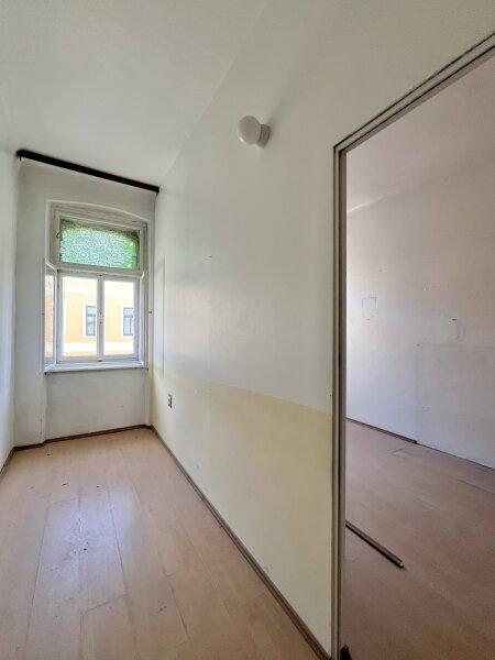 Die Wohnung befindet sich in einem unsanierten Zustand und kann dank des großen Vorraums zu einer schönen, gut bewohnbaren Garcionerre gestaltet werden.