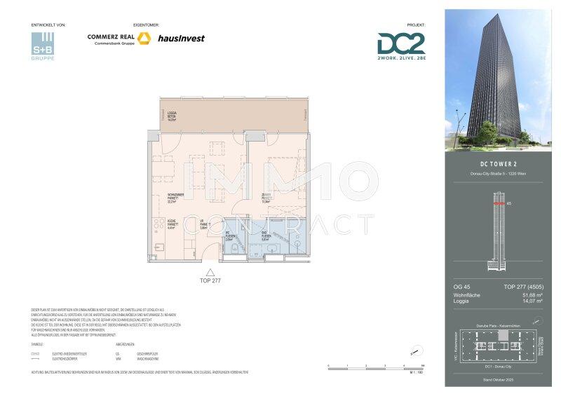 Der DC2 Tower zählt mit 52 Stockwerken und 314 hochwertigen Wohnungen ab dem 32. Obergeschoß zu den spektakulärsten Wohnprojekten des Landes. Die Wohnungsgrößen von ca. 30 bis 260 Quadratmetern bieten ein bewusst vielfältiges Angebot von intelligent geplanten Einzimmerstudios über komfortable Familienwohnungen bis hin zu großzügigen Fünfzimmer-Maisonettewohnungen. Jede Einheit überzeugt durch durchdachte Grundrisse, hohe Wohnqualität und großzügige Fensterflächen, die den Blick nach außen inszenieren und die Stadt Teil des Wohnraums werden lassen. Loggien, Balkone und Freiräume erweitern den Wohnbereich und machen die beeindruckende Höhe unmittelbar erlebbar.