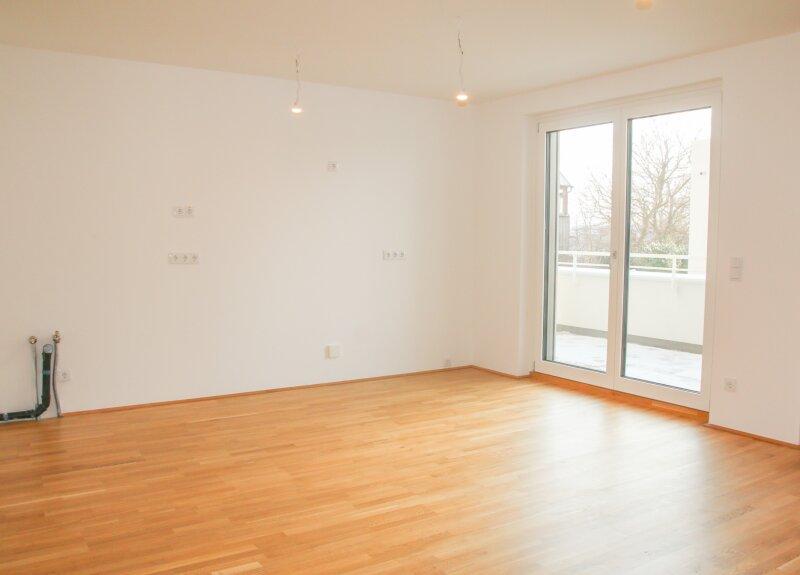 Beim Betreten der Wohnung gelangt man in den Vorraum, von dem aus sämtliche Räume zentral erreichbar sind. Der großzügige Wohn-/Essbereich mit offener Küche bildet den Mittelpunkt der Wohnung. Große Fensterflächen sorgen für viel Tageslicht und schaffen eine offene, ruhige Wohnatmosphäre.