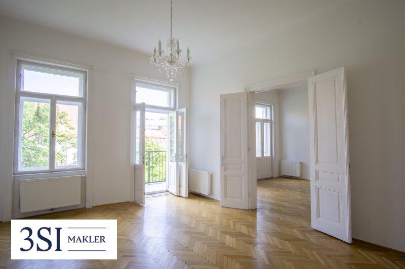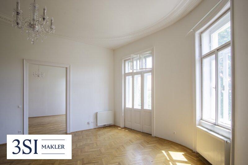 - Französisches Fischgrätparkett, prachtvolle Stuckleisten, traditionelle Kastenfenster mit Laibungen, hohe Türen im Alt-Wien Stil