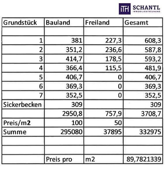 In den ca. 3.700m2 ist das Sickerbecken für die optimale Entwässerung berücksichtigt (siehe Teilungsplan)