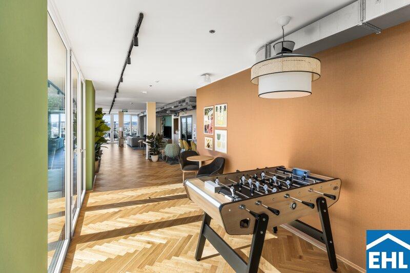 Neben Ihrem privaten Wohnbereich profitieren Sie von großzügigen, hochwertig gestalteten Gemeinschaftsflächen, die weit über das Übliche hinausgehen: Ob konzentriertes Arbeiten im Co-Working Space, entspannte Stunden in der stilvollen Bewohner Lounge oder aktive Pausen im hauseigenen Fitness- und Yogastudio hier finden Sie genau den Ort, den Sie gerade brauchen. Für gesellige Momente stehen Ihnen ein exklusiver Private-Dining-Raum, ein Gaming Room und ein einladender Kinosaal zur Verfügung. Wer kreativ tätig werden möchte, findet im professionell ausgestatteten Podcast Raum den idealen Rahmen. Ein besonderes Highlight ist die grüne Dachterrasse mit Gemeinschaftsgarten ein Rückzugsort über den Dächern der Stadt, der zum Entspannen, Gärtnern und Genießen einlädt.