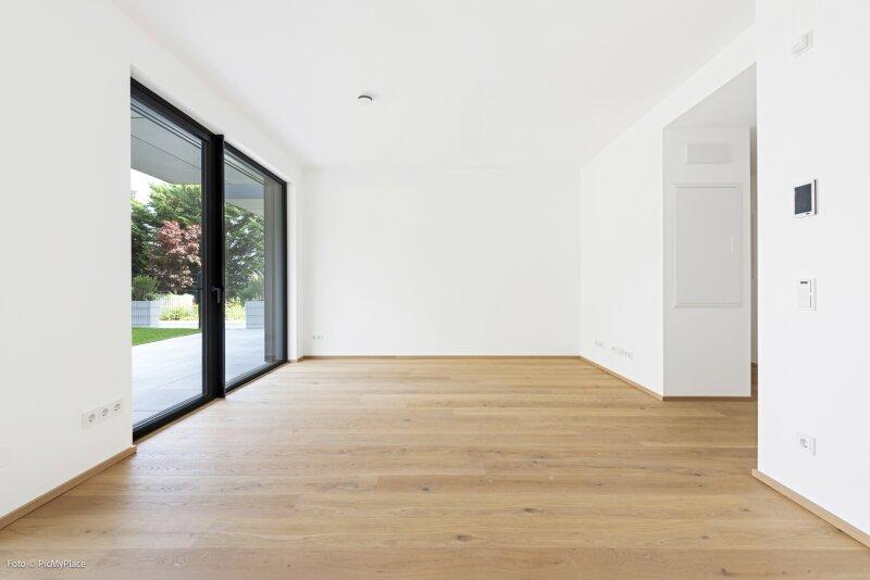 Die Immobilie liegt im Erdgeschoss eines neu erbauten Wohnhauses und erstreckt sich über eine Wohnfläche von ca. 49 m2. Sie teilt sich auf in eine offene Wohnküche, ein Schlafzimmer, ein Bad mit Dusche und ein separates WC. Außerdem ist eine große Terrasse und ein Garten Teil des Eigentums. Die Haupträume der Wohnung sind mit Eichenparkett ausgestattet und die Nassräume sind mit Grantitoker-Fliesen ausgekleidet. Die Immobilie verfügt über eine Fußbodenheizung, sowie 3-fach verglaste Holz-Alu-Fenster und -Türen, mit außenliegendem Sonnenschutz. Die Eingangstüren und die Terrassentüren sind einbruchsgesichert. Ebenso besteht die Option einer Alarmanlage.