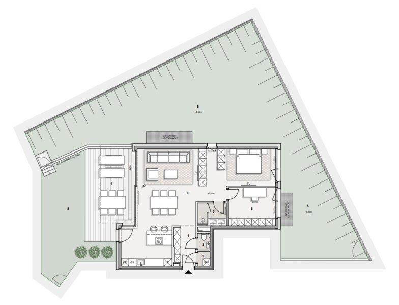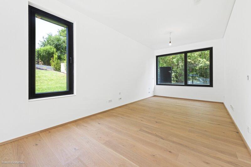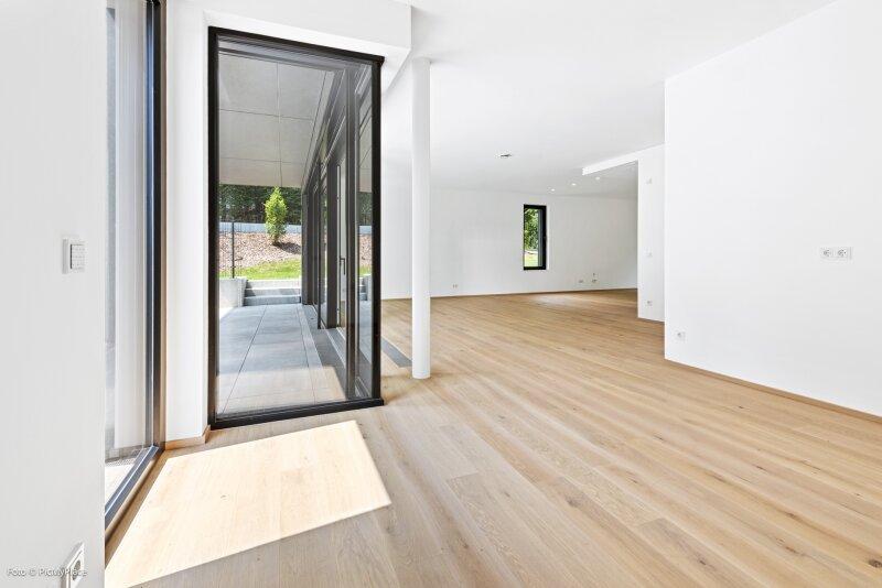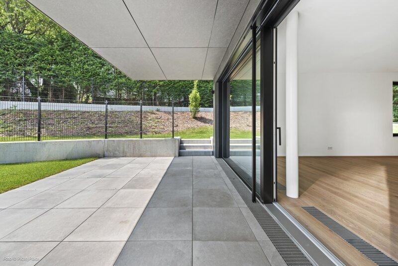Die Immobilie liegt im Erdgeschoss eines neu erbauten Wohnhauses und erstreckt sich über eine Wohnfläche von ca. 86 m2. Sie teilt sich auf in einen offenen Wohnbereich, ein Zimmer, ein Bad mit Dusche, ein separates WC und einen Abstellraum. Außerdem ist eine große Terrasse und ein knapp 204 m2 großer Garten Teil des Eigentums. Die Haupträume der Wohnung sind mit Eichenparkett ausgestattet und die Nassräume mit Grantitoker-Fliesen ausgekleidet. Die Immobilie verfügt über eine Fußbodenheizung, sowie 3-fach verglaste Holz-Alu-Fenster und -Türen, mit außenliegendem Sonnenschutz. Die Eingangstüren und die Terrassentüren sind einbruchsgesichert. Ebenso besteht die Option einer Alarmanlage.