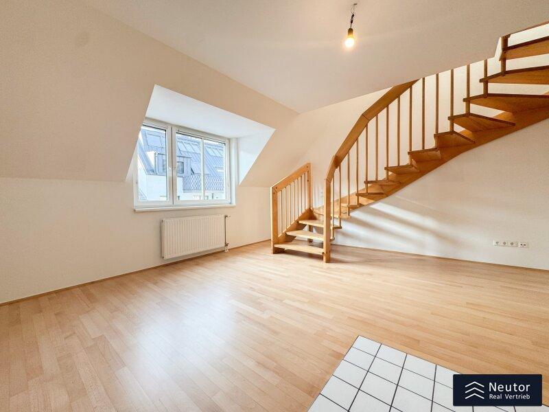 Zur Vermietung gelangt diese charmante Dachgeschoss-Maisonette mit ca. 104 m² Gesamtwohnfläche, die sich großzügig über zwei Ebenen erstreckt. Drei gut geschnittene Zimmer, zwei Terrassen, sowie die zentrale Lage schaffen ein attraktives Wohnangebot mit viel Licht und Freiraum - ideal für alle, die urbanes Wohnen mit Komfort verbinden möchten.