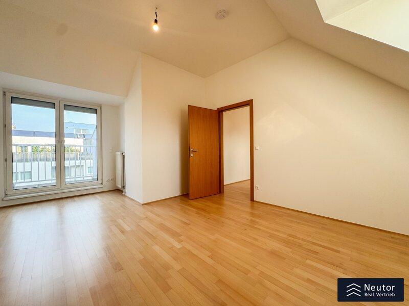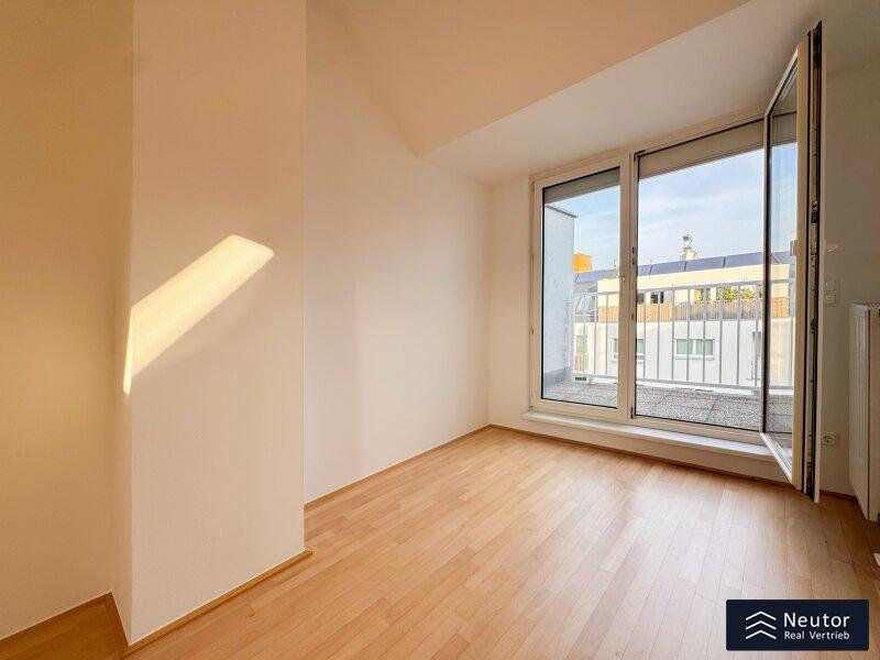 Über die Treppe gelangen Sie in das obere Geschoss der Maisonette. Hier erwarten Sie zwei weitere großzügige Zimmer, die jeweils über eine eigene Terrasse verfügen. Als private Außenbereiche schaffen sie zusätzlichen Freiraum und laden dazu ein, entspannte Stunden unter freiem Himmel zu verbringen.