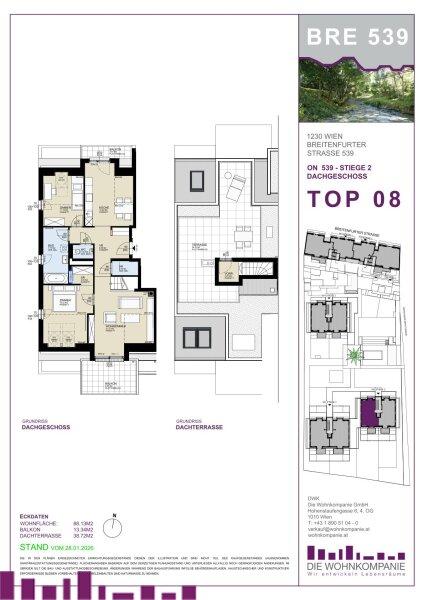 Diese einzigartige 3-Zimmer-Dachgeschosswohnung vereint modernes Design, hochwertige Ausstattung und eine beeindruckende Wohnqualität. Mit einer Wohnfläche von 88,09 m², einer beeindruckenden Raumhöhe von 2,72 m sowie einer großen Dachterrasse (38,78 m²) und zwei zusätzlichen Balkonen (insgesamt 13,34 m²) bietet diese Wohnung ein einmaliges Wohngefühl.