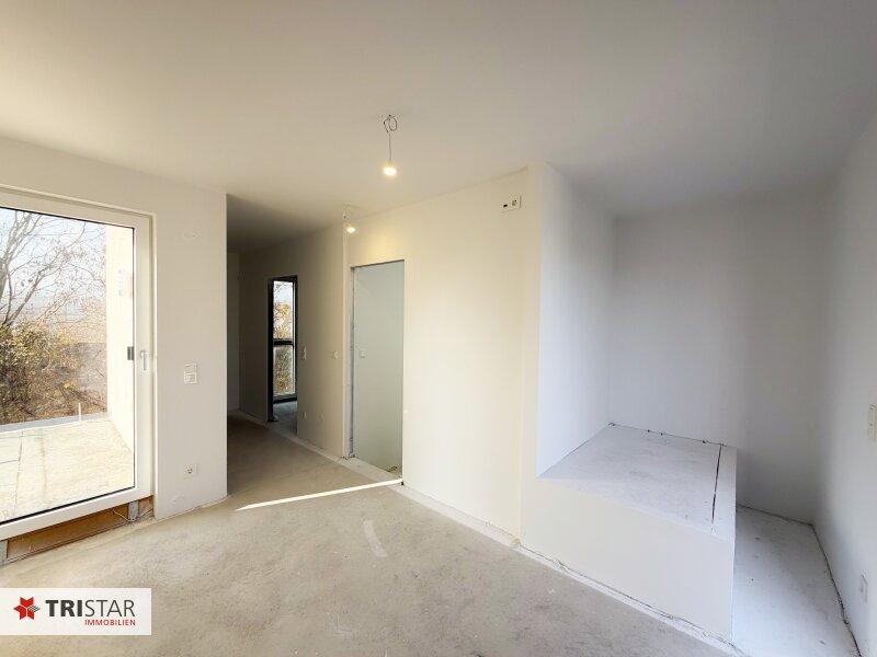 Hier entsteht ein offener, kommunikativer Wohnbereich mit unmittelbarer Verbindung ins Grüne.