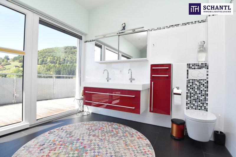 - im OG: riesengroßes Badezimmer mit Dusche & Sauna 16,90m² und Ausgang zum Balkon 17,45m²