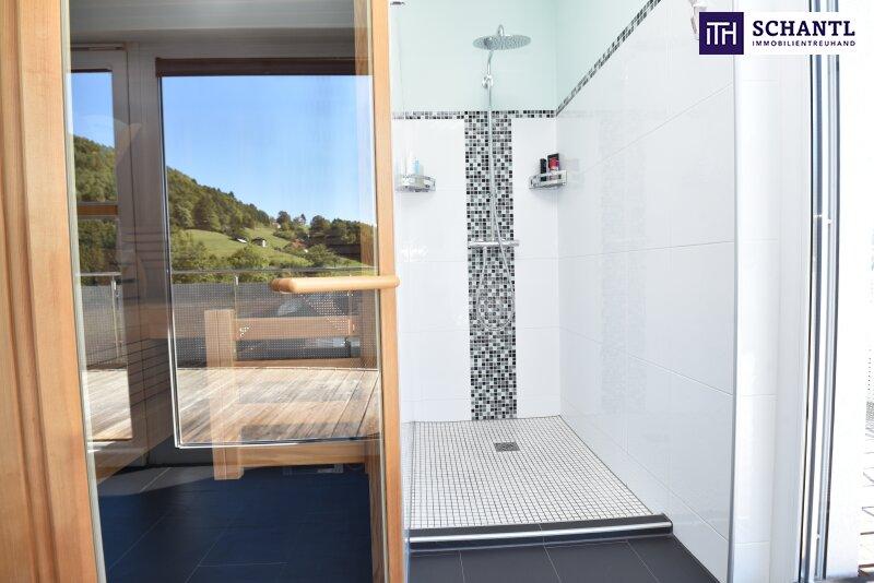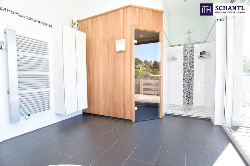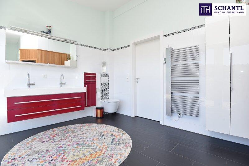 - im OG: riesengroßes Badezimmer mit Dusche & Sauna 16,90m² und Ausgang zum Balkon 17,45m²