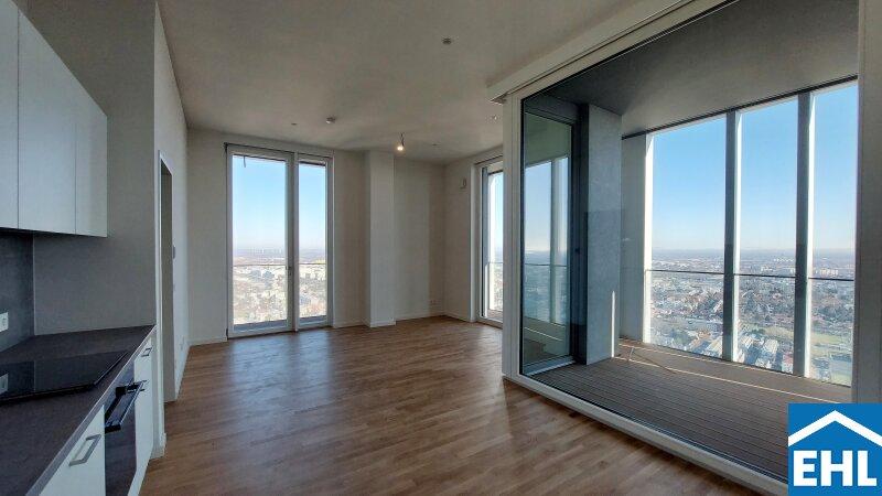 In einzigartiger Lage, direkt bei der U1-Station Kagran und vis-à-vis vom Donau Zentrum, entsteht ein exklusiver, ca. 155m hoher Wohnturm mit 45 Etagen. Die insgesamt 347 Mietwohnungen bieten einen vielfältigen Wohnungsmix: von smart geschnittenen 1,5-Zimmer-Apartments ab ca. 38 m² über komfortable 2-Zimmer-Wohnungen bis hin zu großzügigen 3- und 4-Zimmerwohnungen mit bis zu ca. 80 m².