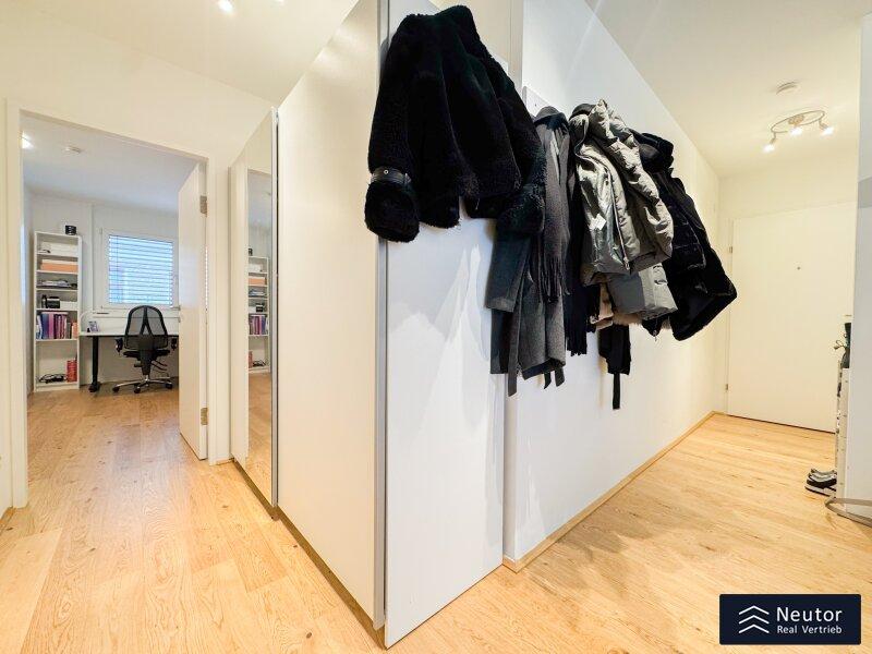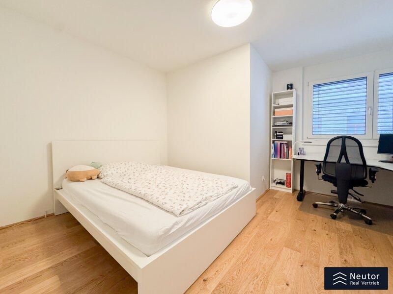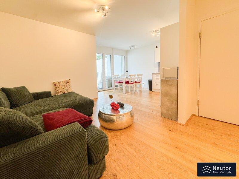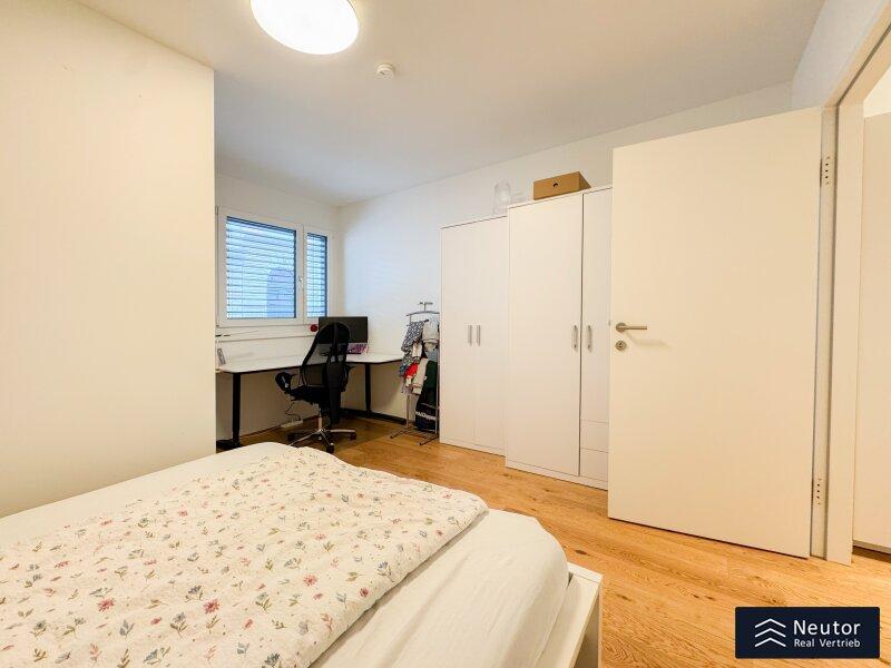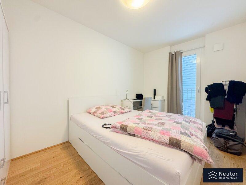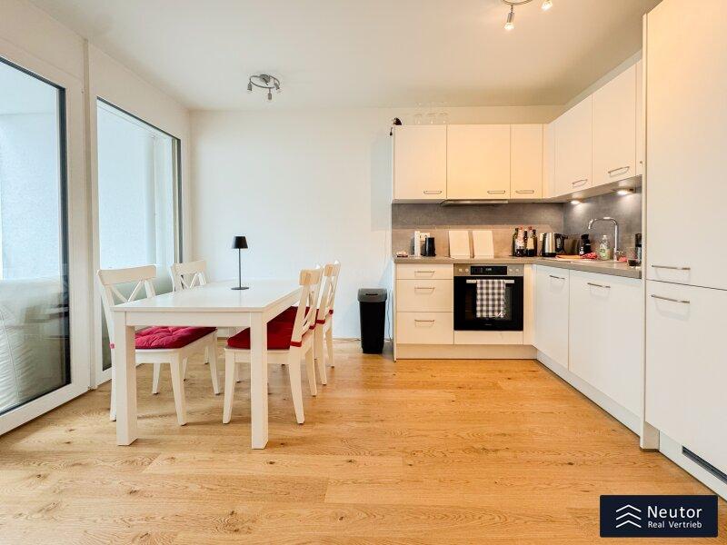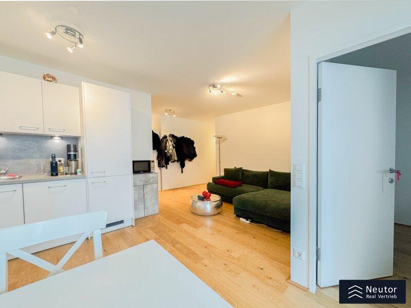 In diesem exklusiven Neubauprojekt im 1. Obergeschoss präsentiert sich diese ansprechende 3-Zimmer-Wohnung mit Loggia im Zweitbezug als ideales Zuhause für alle, die modernes Wohnen mit urbaner Lebensqualität verbinden möchten. Schon beim Eintreten empfängt Sie ein einladender Vorraum mit ausreichend Platz für eine Garderobe. Von hier aus öffnet sich direkt der helle Wohn- und Essbereich, der mit großen, bodentiefen Fenstern eine offene, freundliche Stimmung vermittelt. Die moderne Einbauküche fügt sich harmonisch in den Raum ein und bietet sowohl moderne Ausstattung als auch ausreichend Stauraum. Ein Zimmer ist direkt vom Wohnbereich aus begehbar und eignet sich ideal als Schlafzimmer, Homeoffice oder Gästezimmer. Über einen separaten Gang gelangen Sie in alle weiteren Räume der Wohnung. Hier befinden sich ein weiteres, gut geschnittenes Zimmer sowie das zeitlos verflieste Badezimmer mit hochwertigem Tischlereinbau und Badewanne und auch das separat angelegte WC. Die Schlafzimmer sind ruhig gelegen und dank außenliegendem Sonnenschutz bei Bedarf angenehm abdunkelbar. Ein besonderes Highlight ist die Loggia mit Blick in den ruhigen Innenhof. Sie erweitert den Wohnraum ins Freie und lädt dazu ein, warme Sommerabende entspannt zu genießen. Diese Wohnung überzeugt durch eine gelungene Kombination aus durchdachter Raumaufteilung, modernem Wohnkomfort und zentraler Lage - ein Zuhause, in dem man sich vom ersten Moment an wohlfühlt.