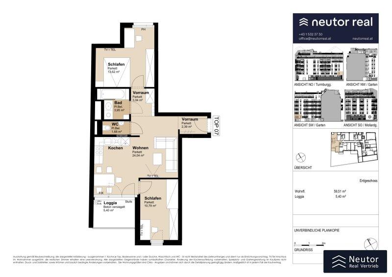 Monatliche Bruttomiete: € 1.600,00 inkl. Betriebskosten und gesetzlicher USt.