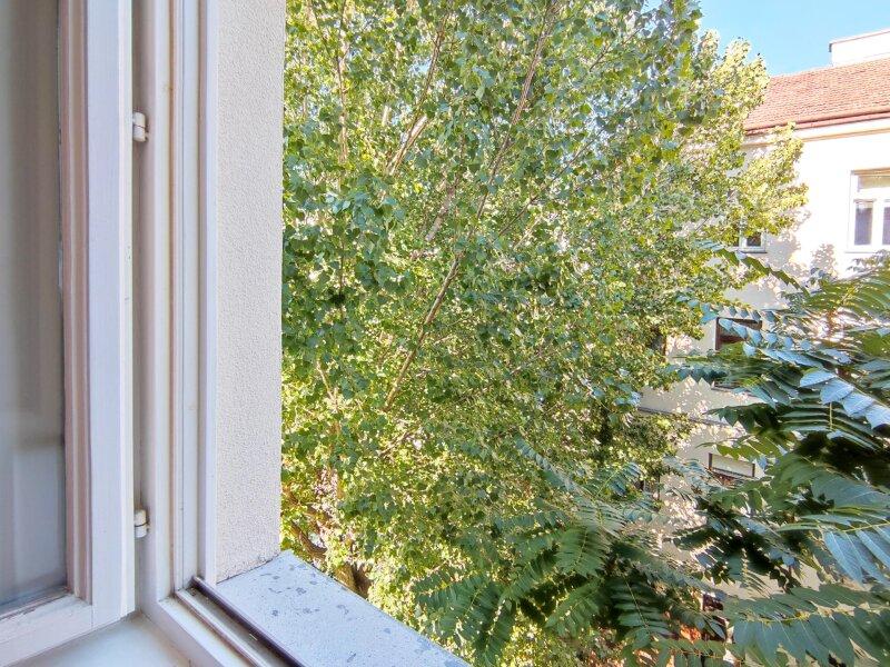 Der 3-Zimmer-Altbau befindet sich im ersten Liftstock und verfügt über ca. 71 qm Wohnfläche. Die Lage im Hoftrakt garantiert optimale Ruhe und Blick in den grünen Baumbestand.
